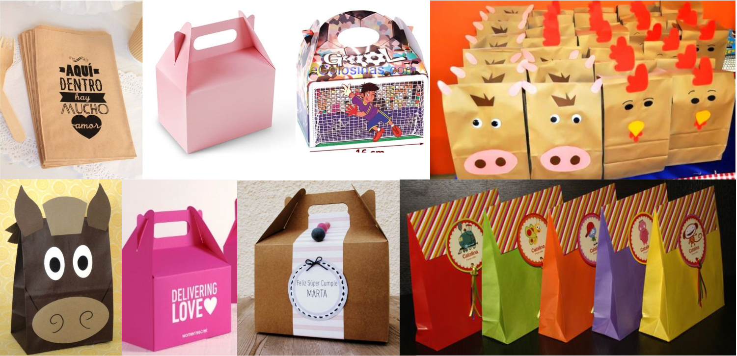 Cajitas de golosinas, emulando la “cajita feliz” con golosinas y juguete, que podemos adaptarla a nuestro gusto y creatividad.