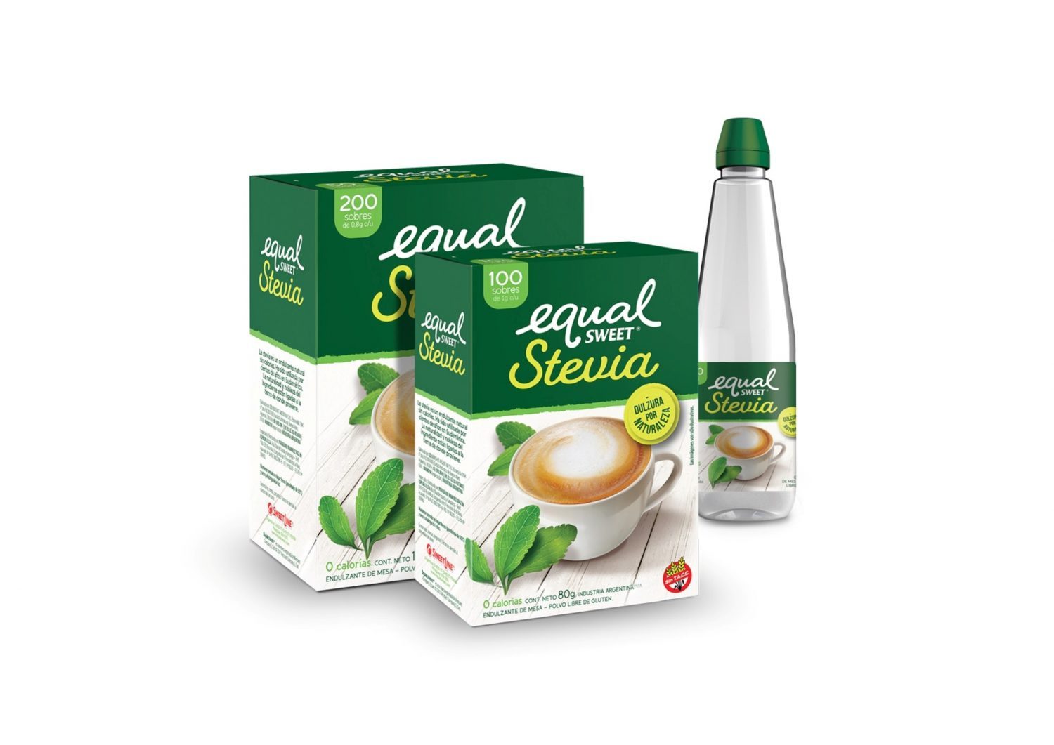 Junto a esta nueva botella, lanzó su presentación de Stevia en caja de 400 sobres para el canal moderno y tradicional. Ambas presentaciones vienen a completar la familia de Equal Sweet Stevia sumándose a sus ya conocidas presentaciones de 50, 100 y 200 sobres.