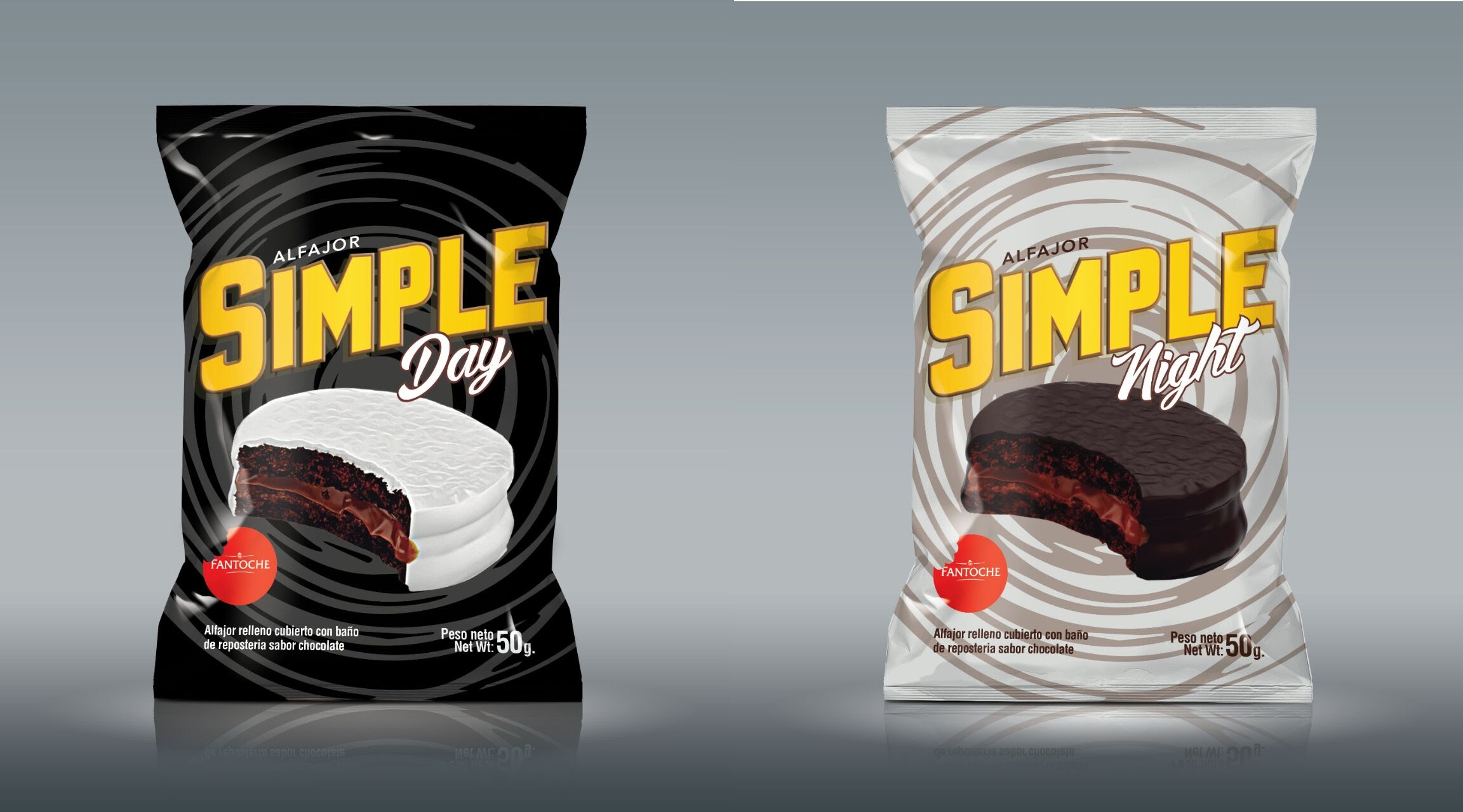 El nuevo alfajor llega para instalarse en la categoría de los alfajores tradicionales de 2 tapas, con dos riquísimas opciones. Por un lado, el Simple Day, relleno con mucho dulce de leche y cubierto con merengue estilo italiano, y por el otro, la opción Simple Night cubierta con un baño de repostería de chocolate semiamargo. Ambos productos mantienen el exquisito sabor y la calidad que caracteriza a Fantoche.