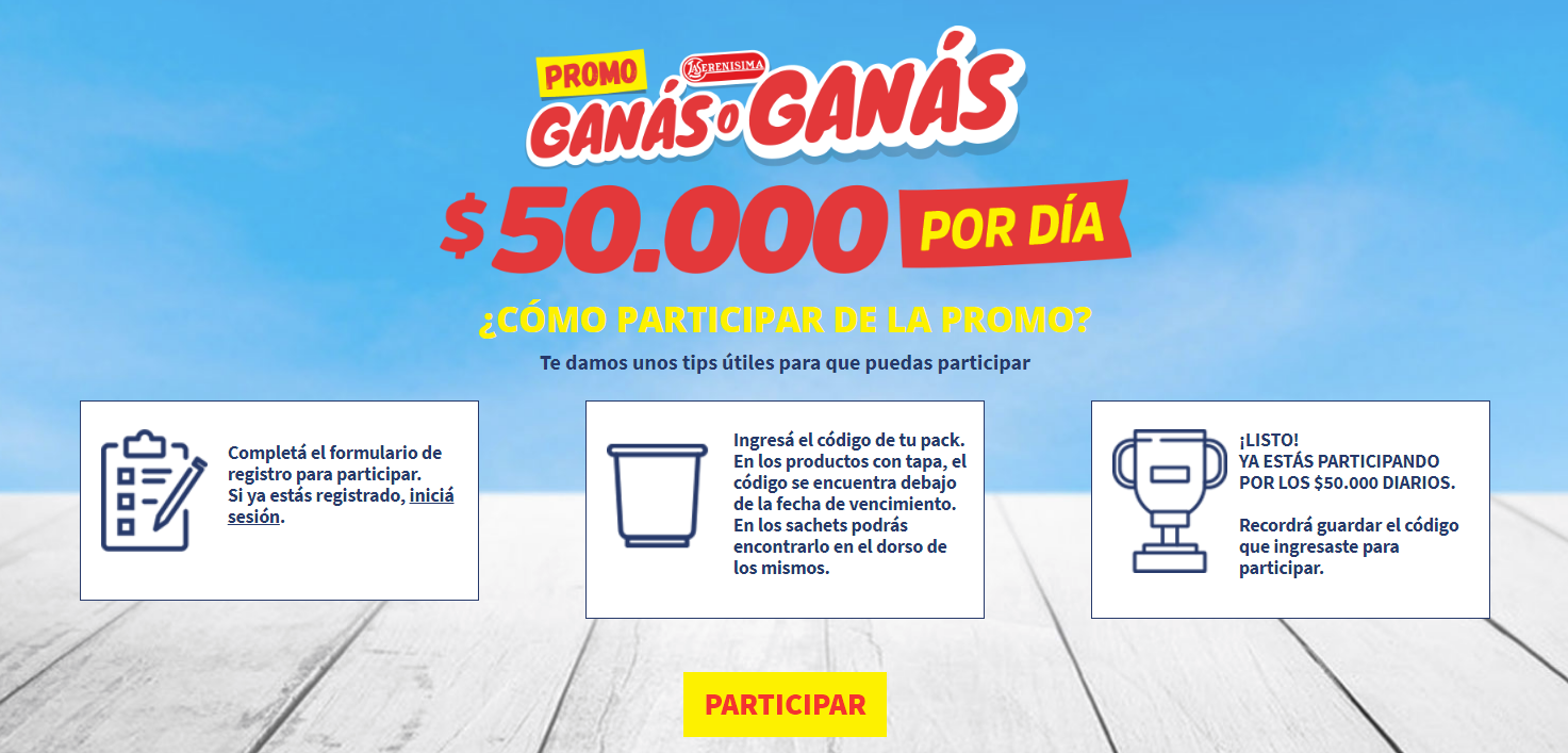Promo La Serenísima Ganás o Ganás estará vigente del 15 de febrero al 31 de marzo de 2019.