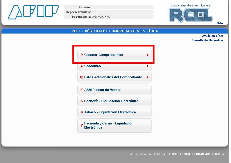 Seleccioná la opción “Generar Comprobantes” dentro de los ítems desplegados.