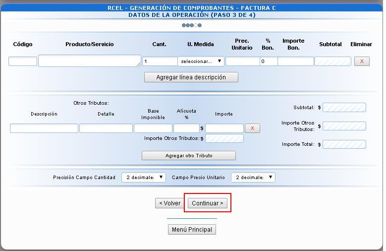 Completá los datos de la operación y luego la opción «continuar«.