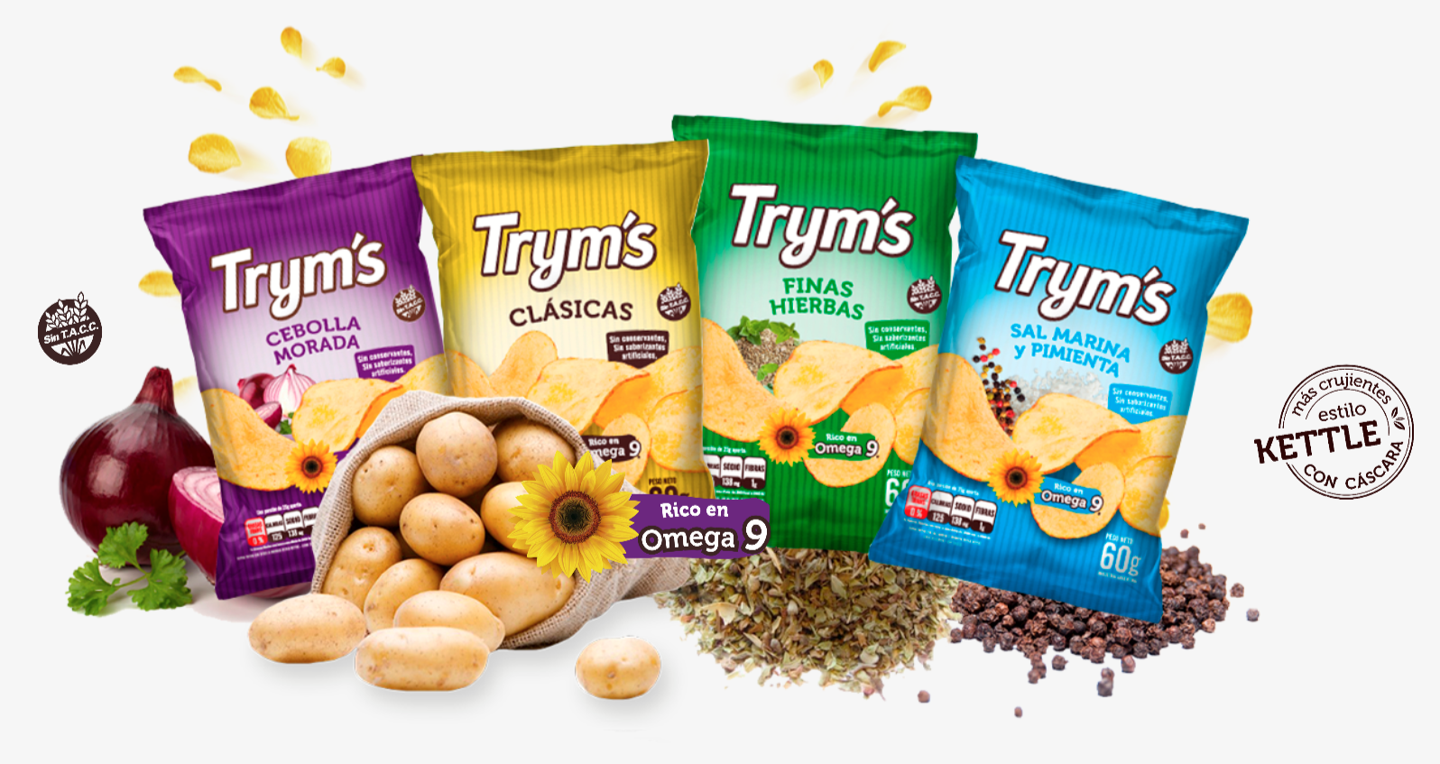 Tryms renueva su línea de Snack Saludables, papas fritas estilo Kettle de alta calidad, elaboradas con cáscara, 100% naturales, sin aditivos, ni conservantes ni saborizantes artificiales, libres de gluten y SIN TACC.