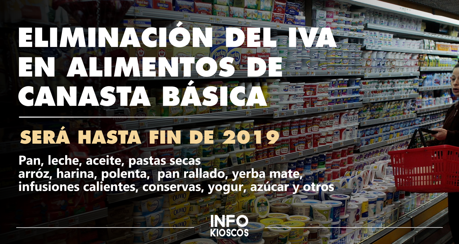Luego de las MEDIDAS ECONÓMICAS, el Gobierno Nacional anunció en una conferencia de prensa la eliminación del IVA en productos de la canasta básica. La medida fue publicada mediante el decreto 567/2019 en el Boletín Oficial y será hasta fin de 2019.
