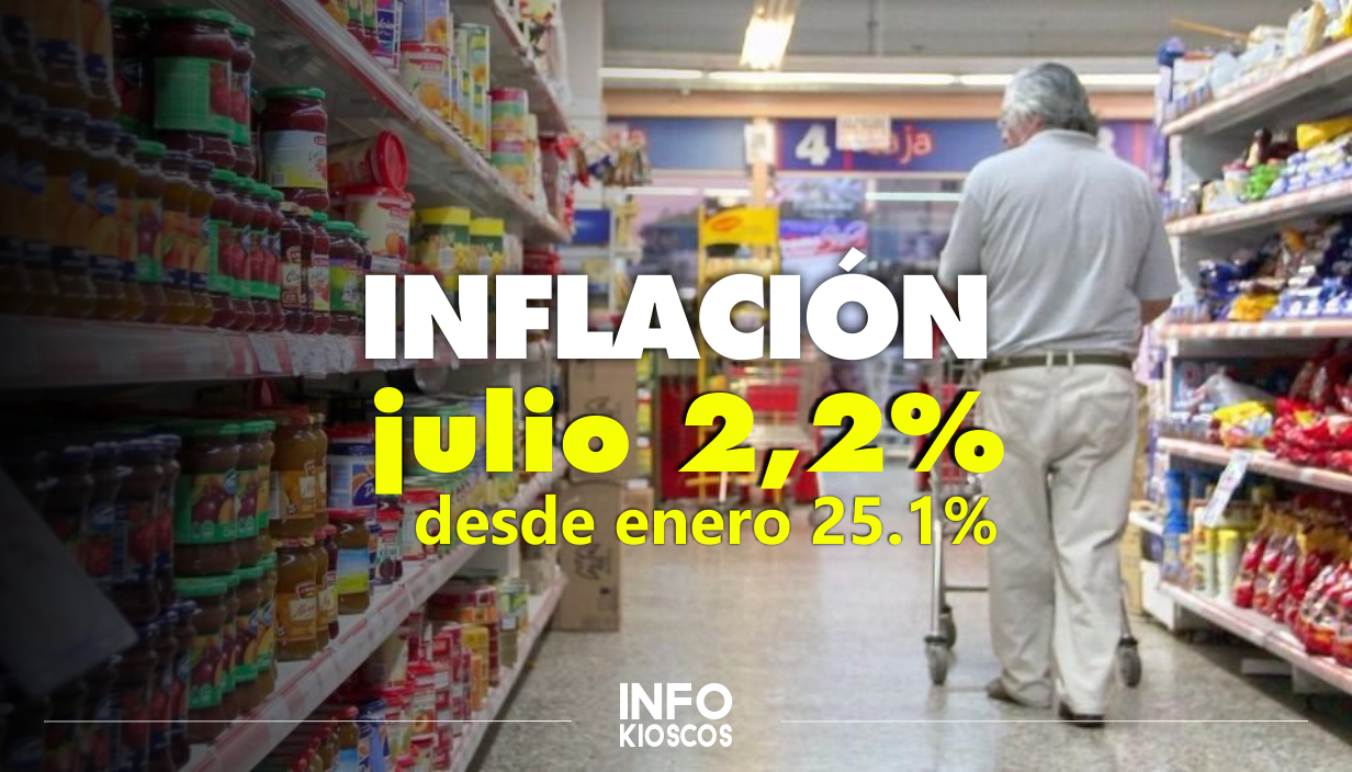 Desde enero el Índice de precios al consumidor del INDEC acumula un aumento de 25.1%. Durante julio la inflación fue del 2.2%. La devaluación de los últimos días se verá reflejada en el próximo informe.