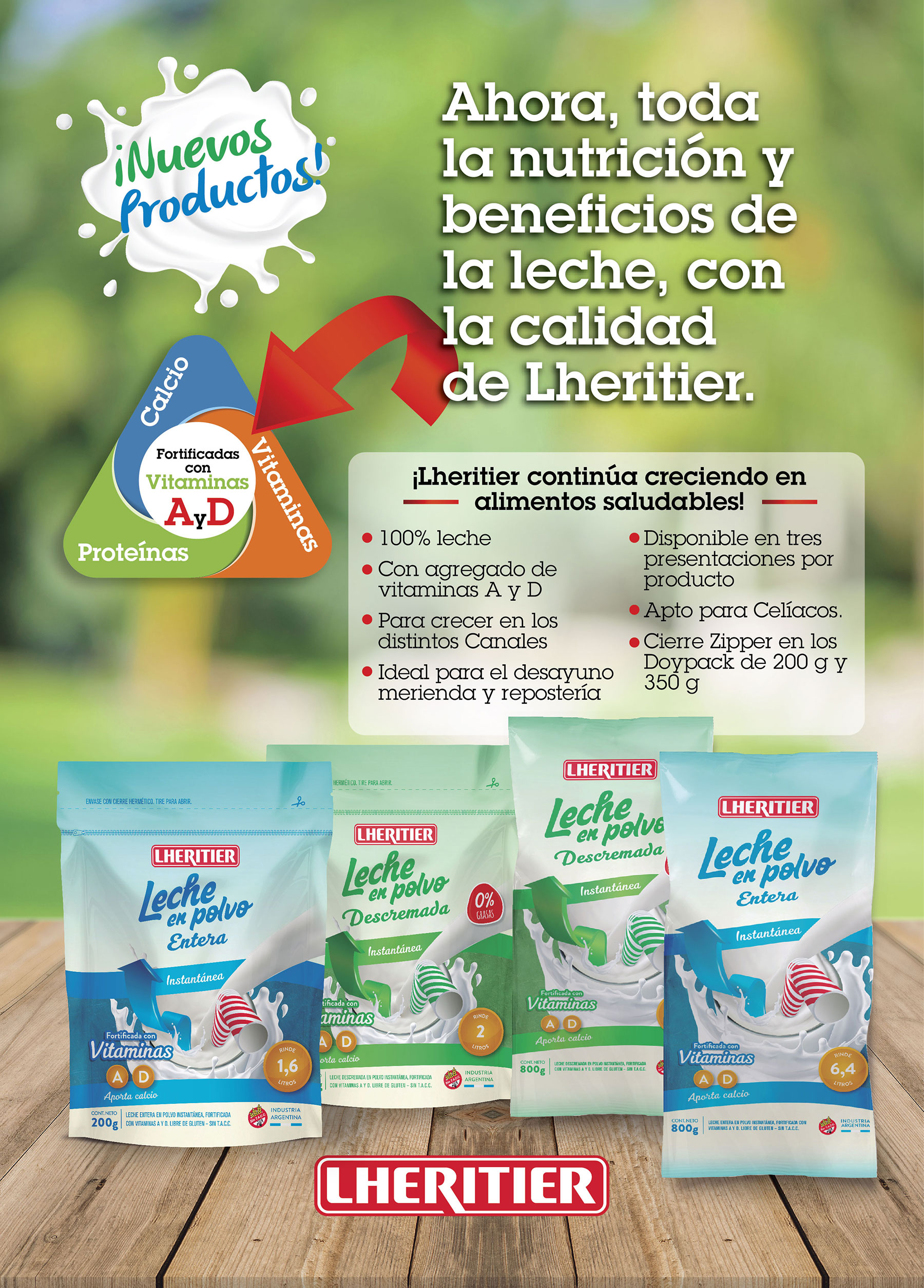 Lheritier lanzó al mercado su nueva Leche en polvo Lheritier. Disponible en tres presentaciones 200 grs. 350 grs. y 800 grs., en sus versiones «entera» y «descremada».