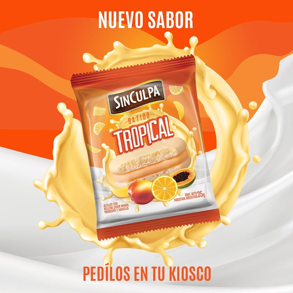 La marca Argentina de alfajores Sin Culpa, presenta su nueva variedad frutal sabor batido tropical, exquisito y refrescante relleno que combina lo mejor del Maracuyá, Mango y Naranja.